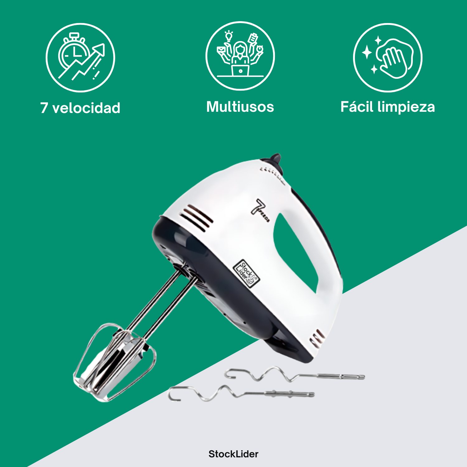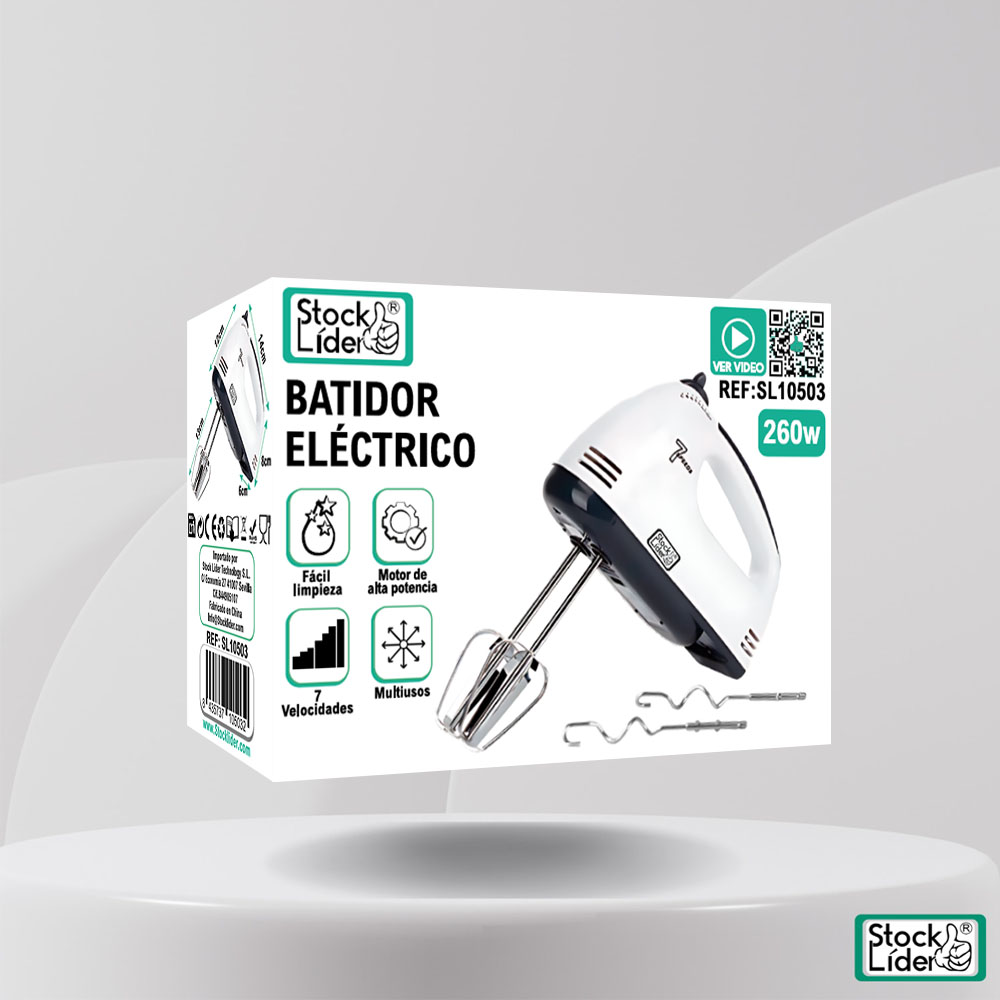 El Batidor Eléctrico de Stock Líder es el aliado perfecto para tus aventuras en la cocina. Con una potencia de 260 W y 7 velocidades ajustables, este batidor te permite mezclar, montar, batir y amasar con total facilidad. Desde claras de huevo esponjosas hasta masas densas de pasteles o galletas, este dispositivo se adapta a cada necesidad con solo presionar un botón.