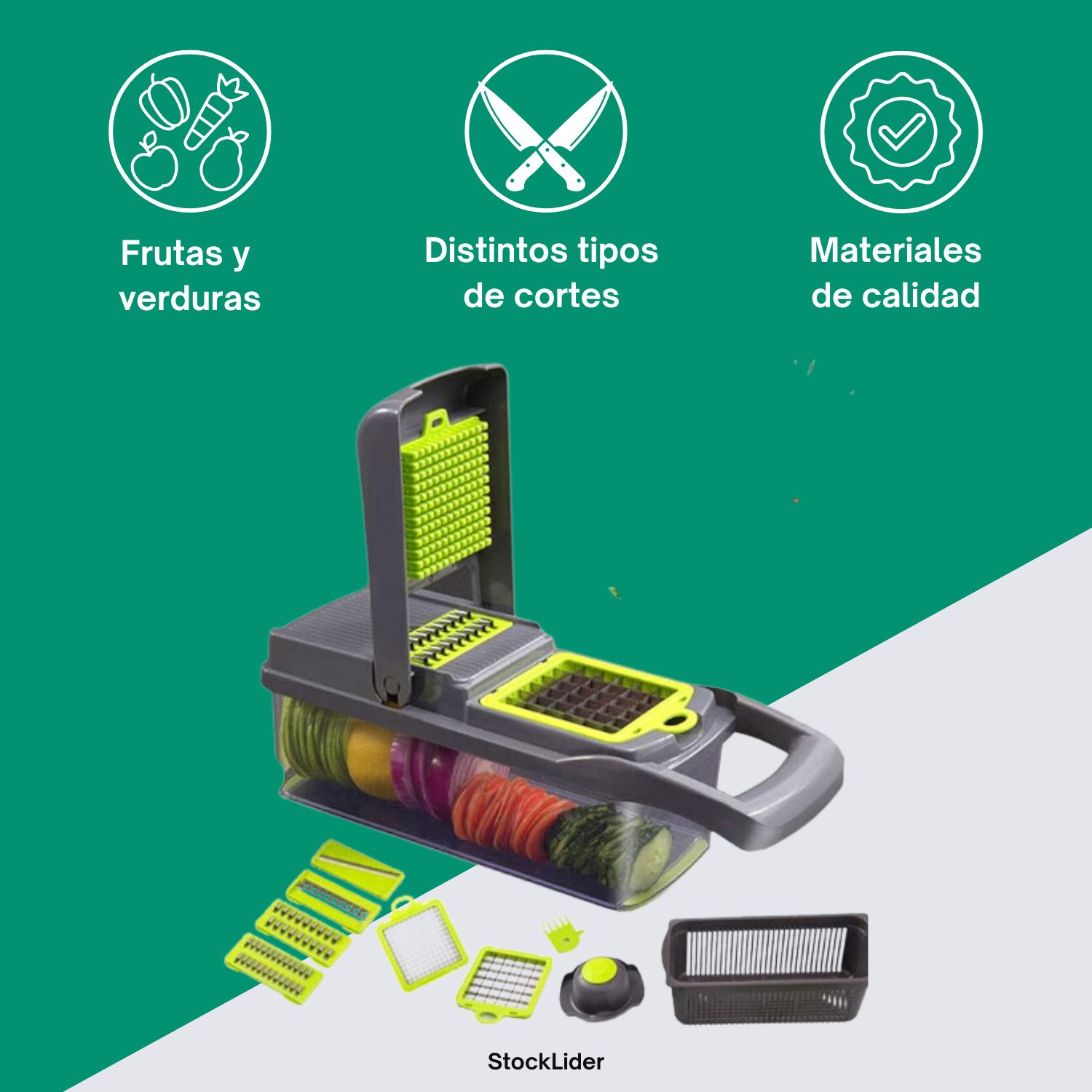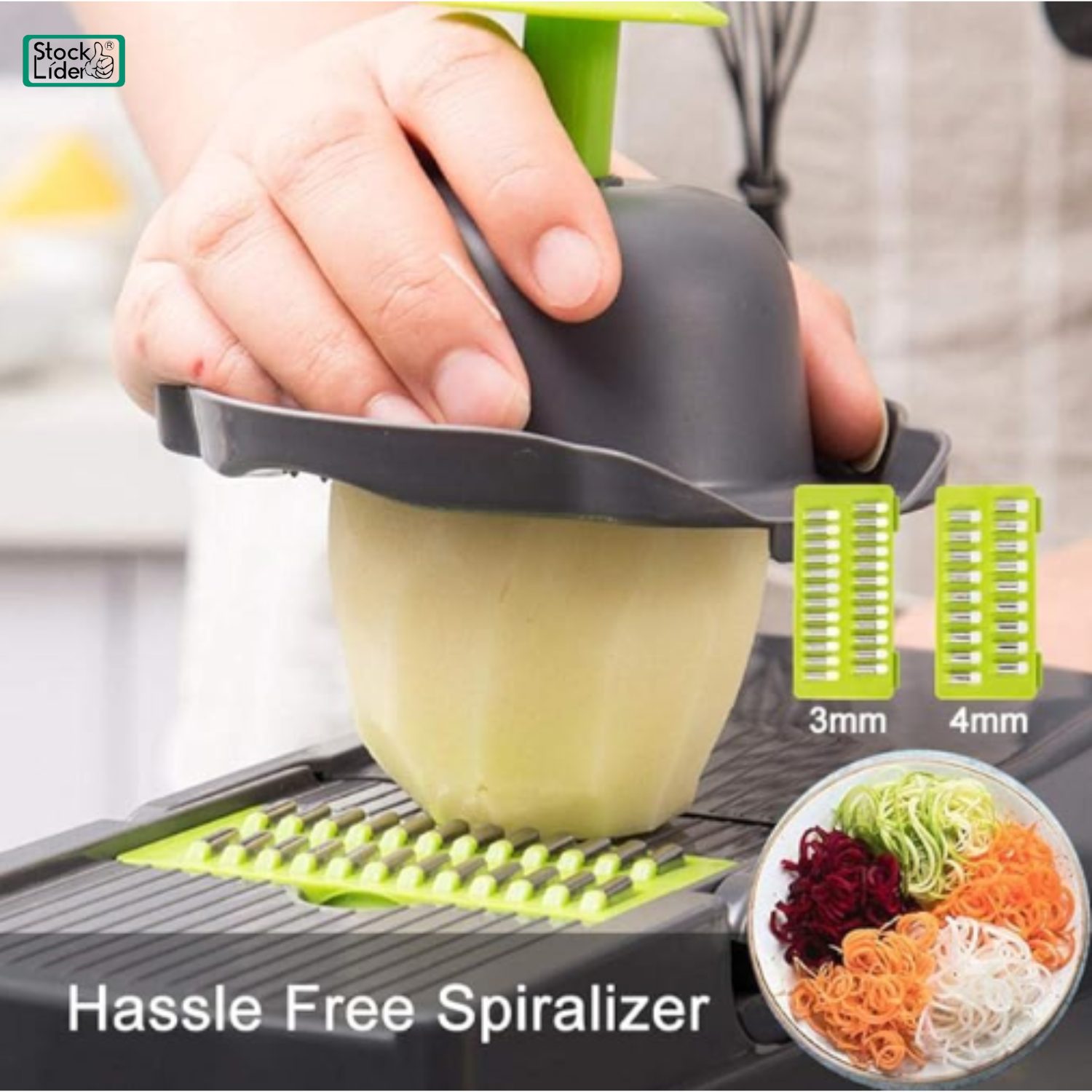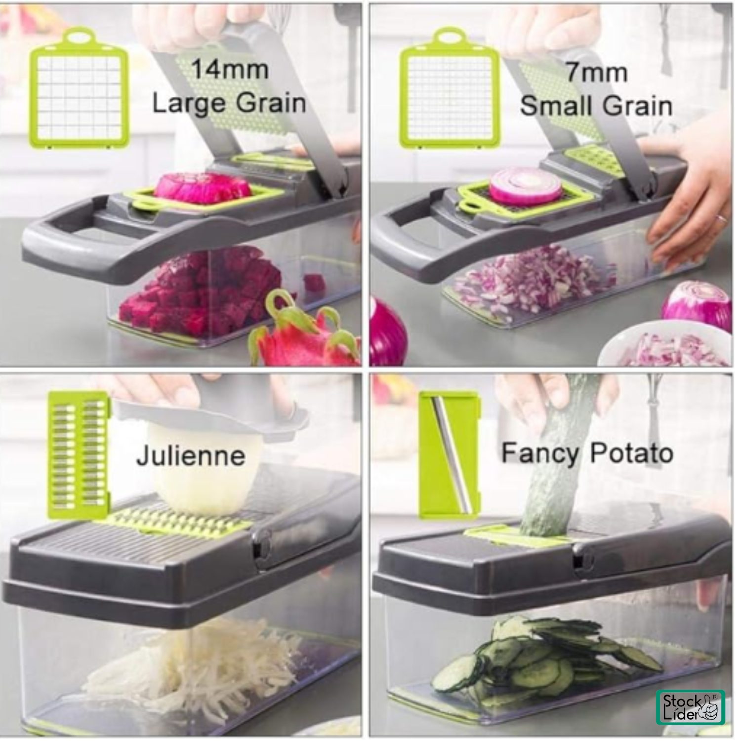 Las cuchillas intercambiables tienen diferentes formas y tamaños, nos permiten cortar, cortar en dados, rebanar, picar, juliana, picar frutas y verduras como cebolla, champiñones, pepinos, zanahorias, papas, tomates, jengibre, ajo y aún más . Los picador de verduras manuales serán un regalo perfecto para nuestra familia, nos ayudarán a ahorrar la mayor parte del tiempo para preparar la comida diaria.
