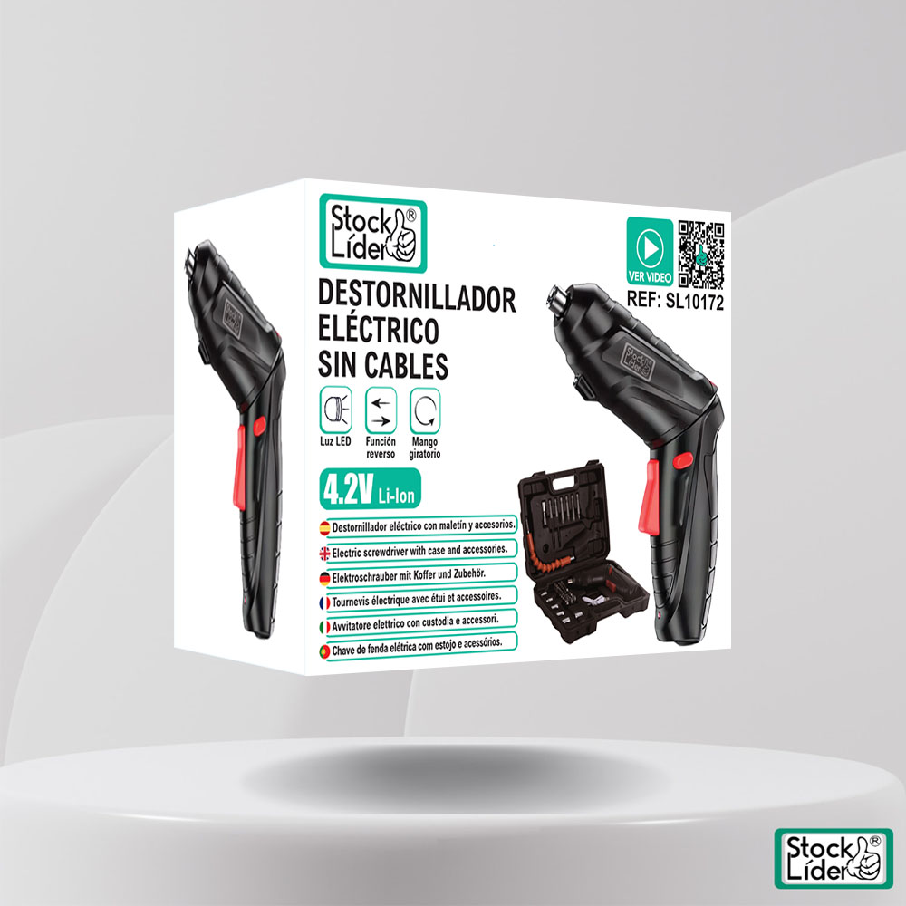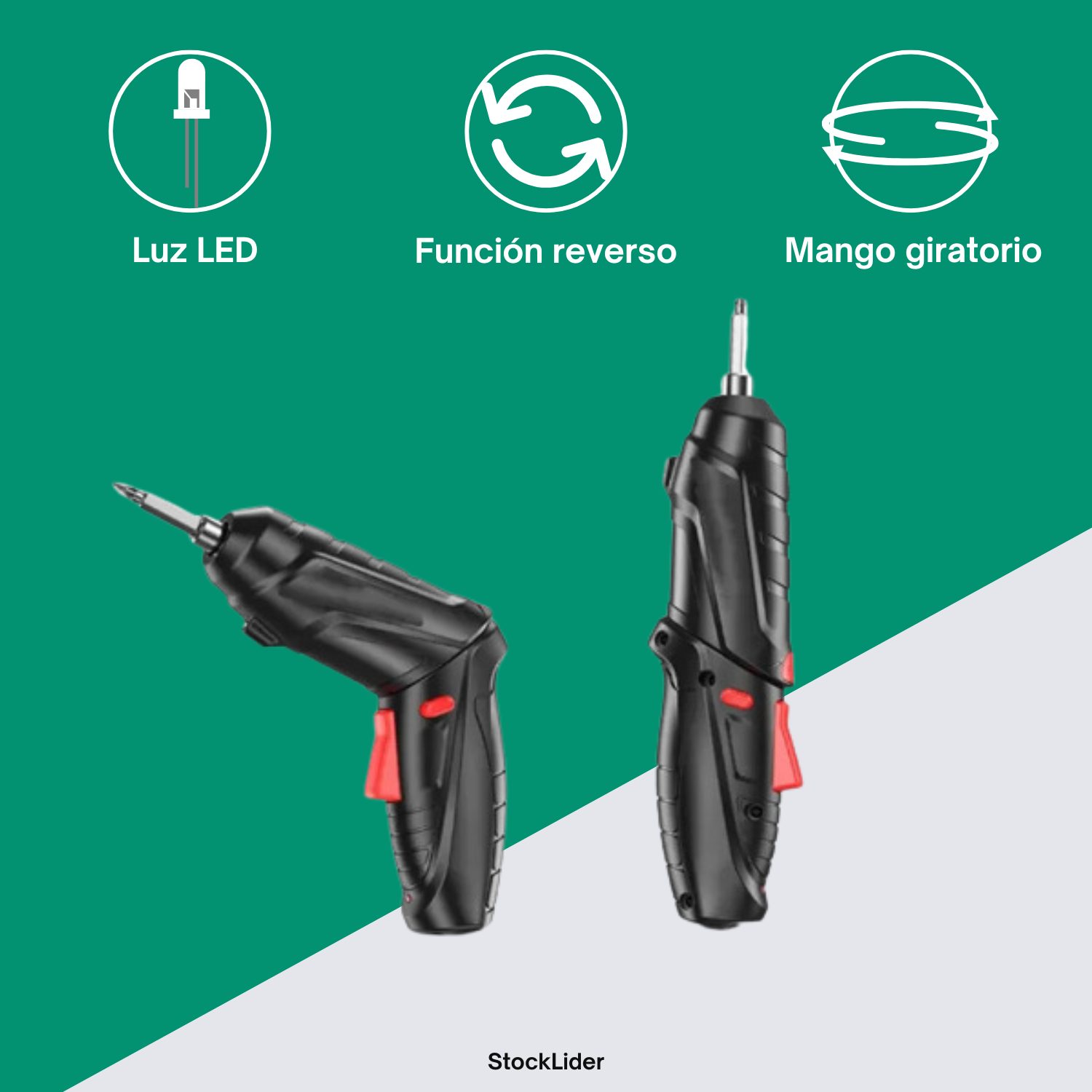 Mango giratorio de 2,90° y 180°: presione el botón para fácilmente cambiar la forma de este destornillador eléctrico inalámbrico. 90° es un destornillador con empuñadura de pistola y 180° es un destornillador recto. El mango giratorio de goma lo hace flexible para adaptarse a diferentes condiciones de trabajo.