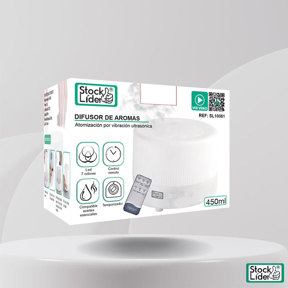 Gracias a este fantástico difusor para casa u oficina, también podrás iluminar tu habitación gracias al led insertado en la parte superior que cambia automáticamente en varios colores.
