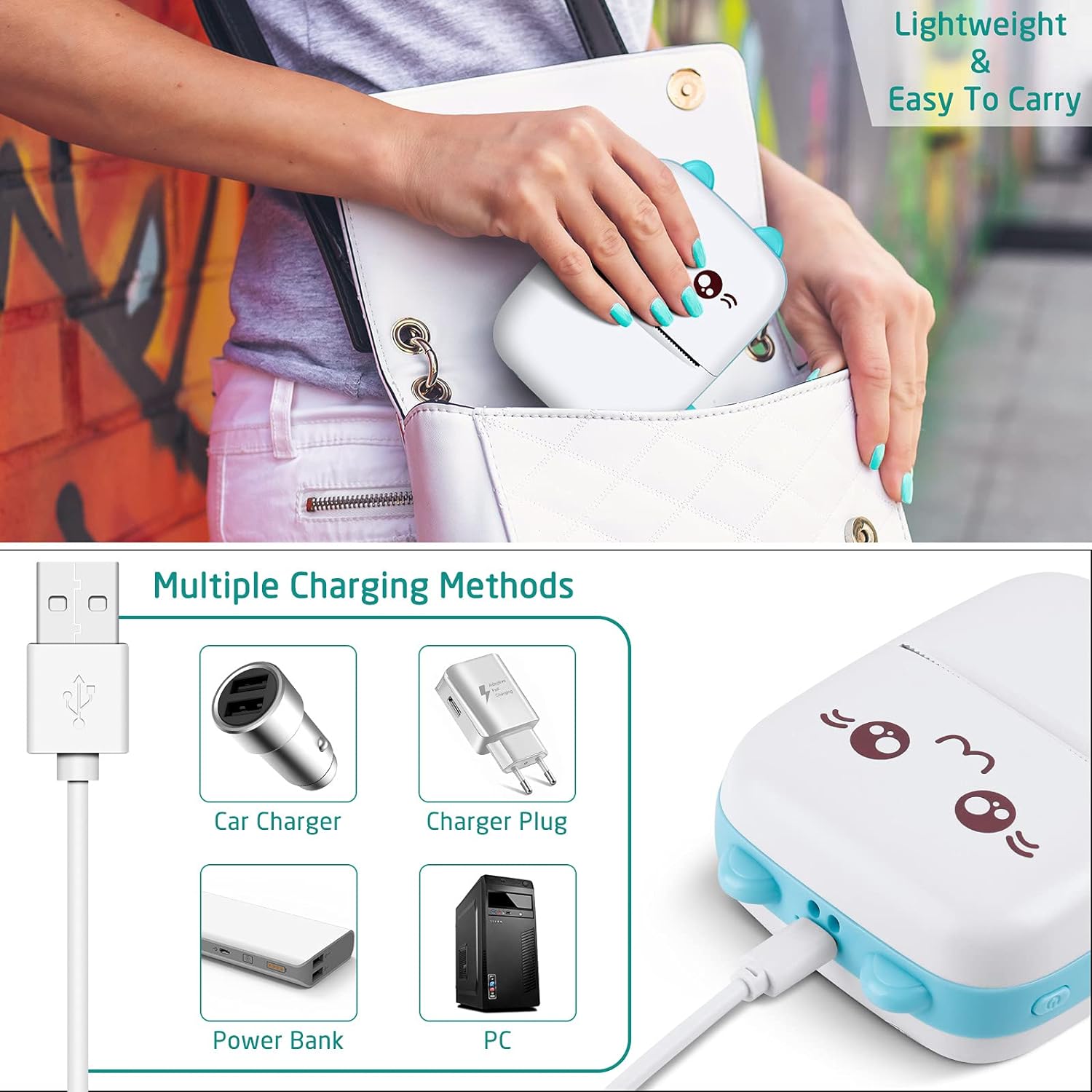 Impresora de bolsillo, con calidad de impresión fiable de 203 ppp para impresión en blanco y negro, 4,3 x 3,1 x 1,4 pulgadas, pequeña y fácil de llevar, portátil e ideal para viajar.