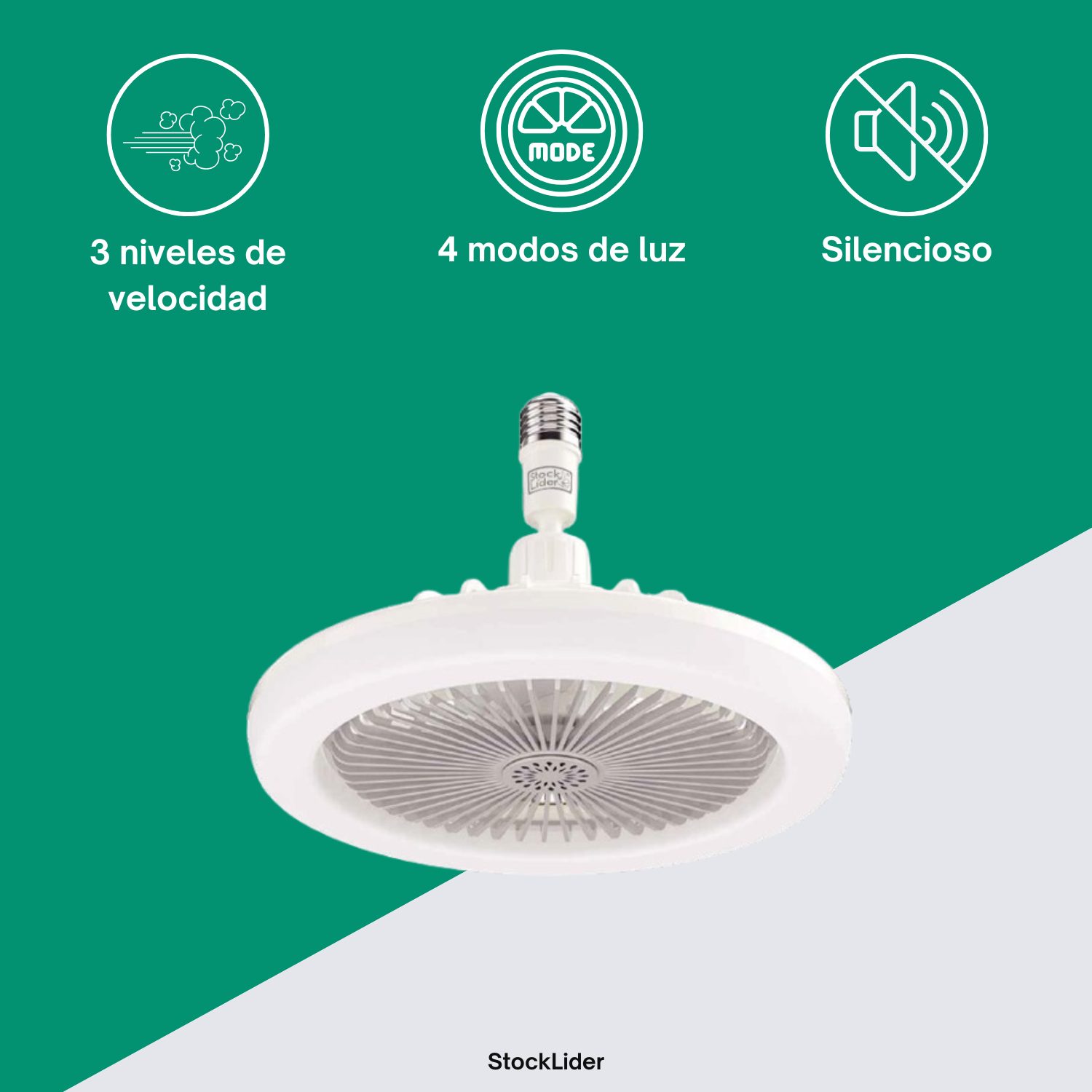 La Lámpara LED con Ventilador es la combinación perfecta entre luz y frescura. Su diseño 2 en 1 ofrece una solución innovadora para cualquier habitación del hogar, permitiendo disfrutar de una iluminación potente junto con un ventilador silencioso y eficaz, todo en un solo producto.