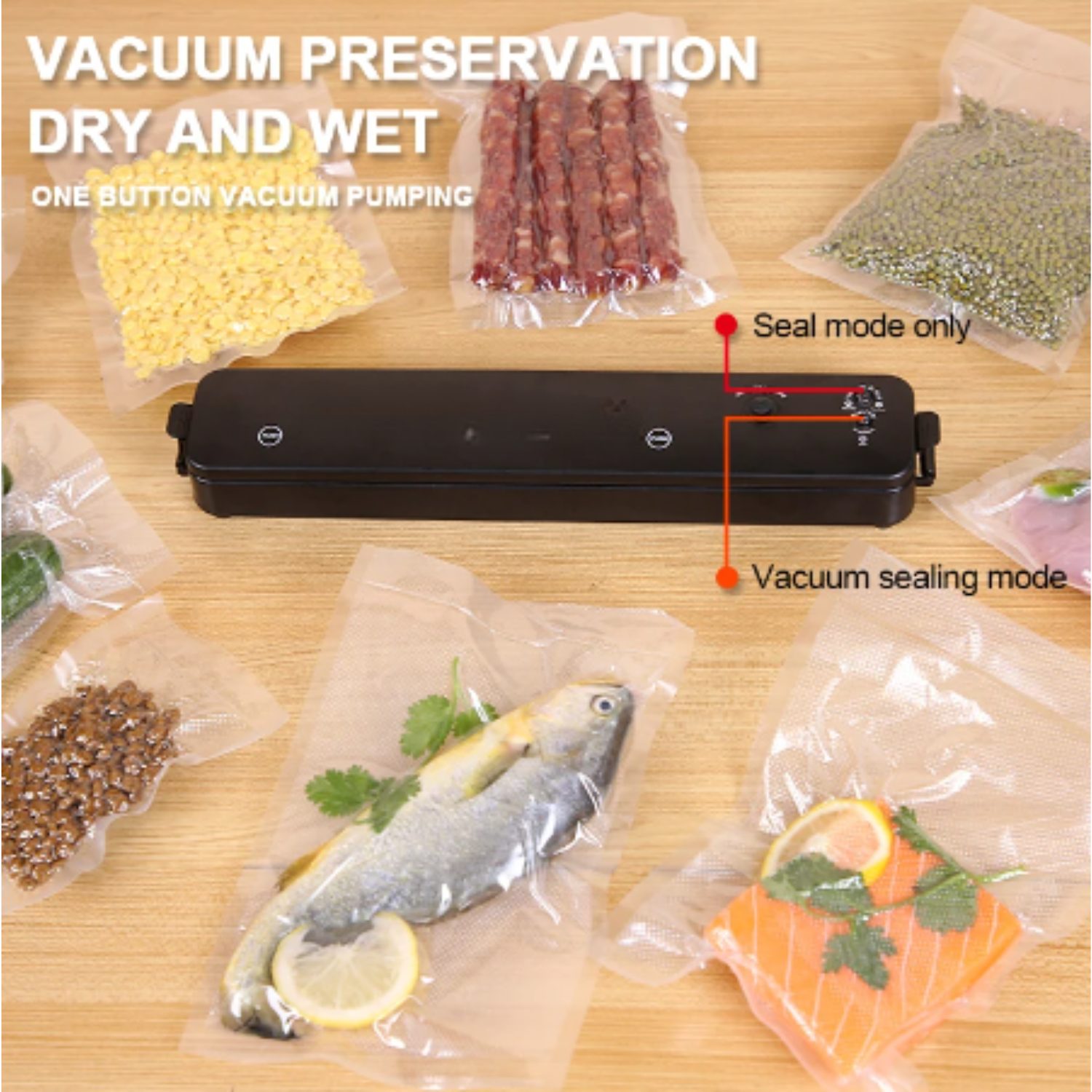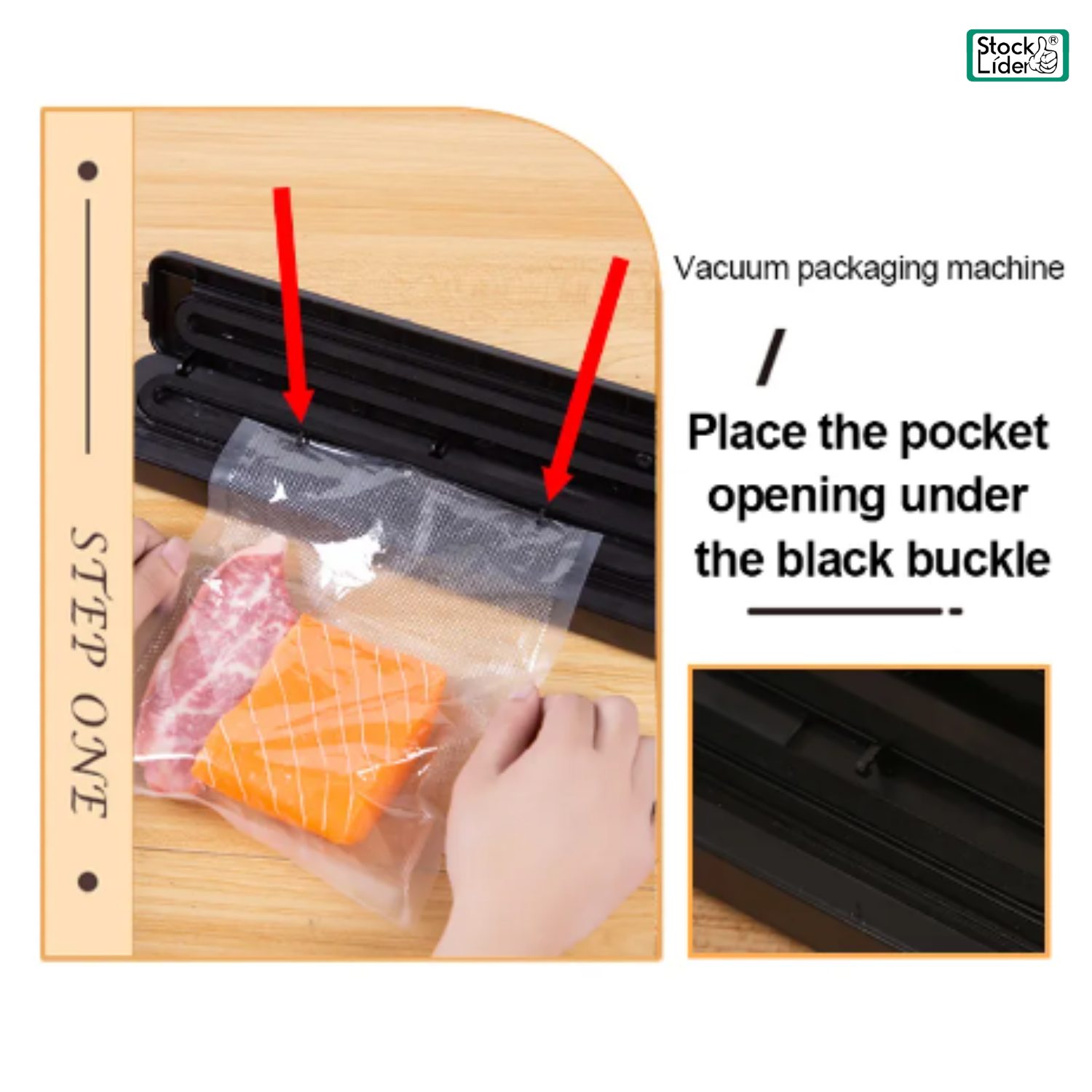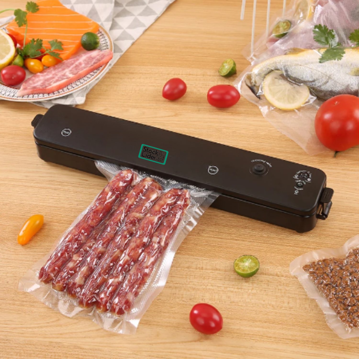 Sellado al vacío: el sellador al vacío de alimentos expulsa el aire de bolsas especialmente diseñadas para mantener la frescura de frutas, frutas secas, carne, dulces, verduras, etc.