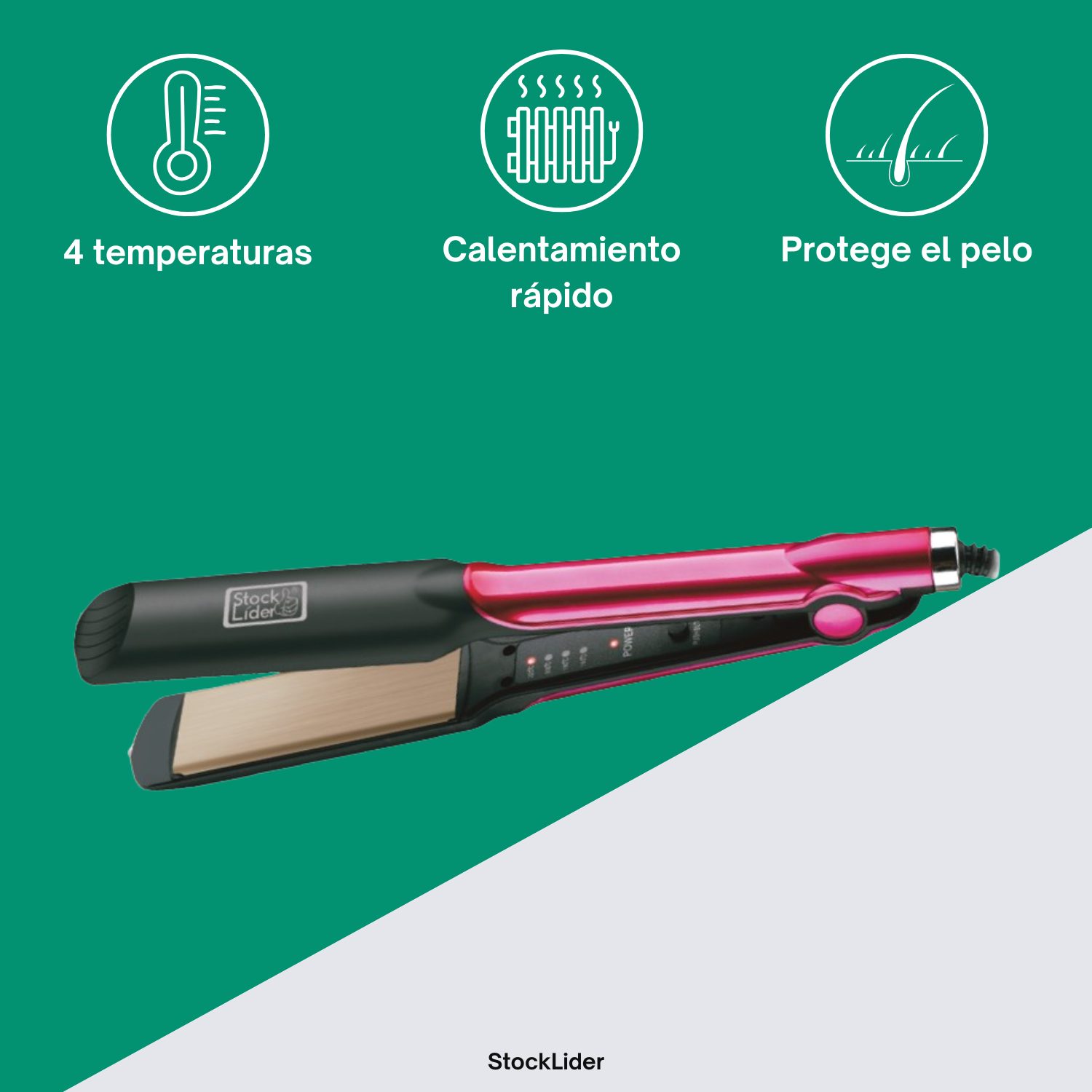Diseñada para transformar tu melena en cuestión de minutos gracias a su tecnología de placas cerámicas que distribuyen el calor de manera uniforme. Su diseño moderno en tonos negro y rosa combina elegancia y funcionalidad, ideal para usar en casa o llevar de viaje.
