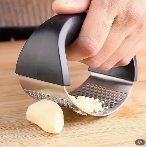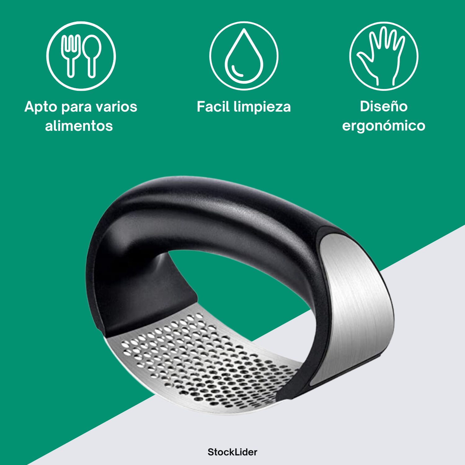 Mango ergonómico: este balancín de prensa de ajo tiene una forma curva y un cómodo diseño de mango. Simplemente gira hacia adelante y hacia atrás a través del tamiz y aprieta el ajo o jengibre fácilmente.