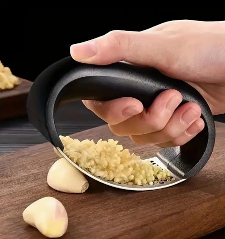 Diseño que ahorra trabajo: la prensa de ajo tiene un diseño abovedado que te permite sujetar cómodamente el mango de la prensa de ajo para una fácil prensa. Todo lo que tienes que hacer es colocar el cortador de ajo en el diente de ajo para moverse hacia adelante y hacia atrás, ahorrando energía y tiempo.