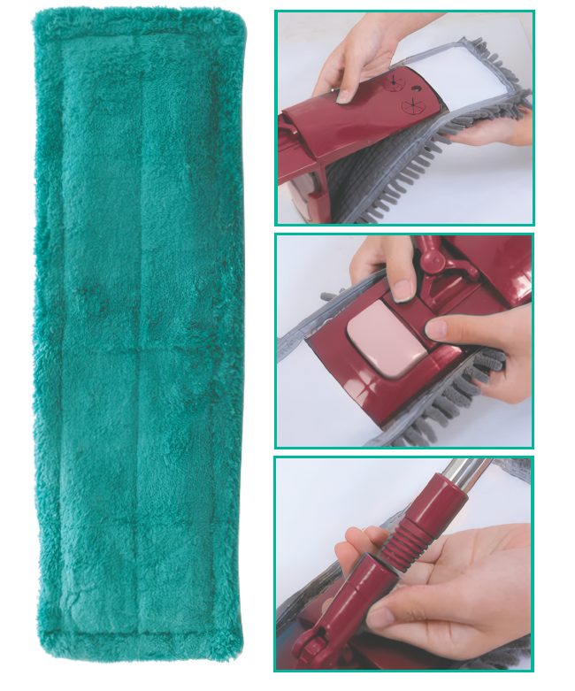 El sistema de montaje es práctico y sencillo, permitiendo colocar el recambio en la mopa en pocos segundos. Su estructura ligera facilita el uso diario sin cansancio, asegurando una experiencia de limpieza más cómoda, fluida y profesional.