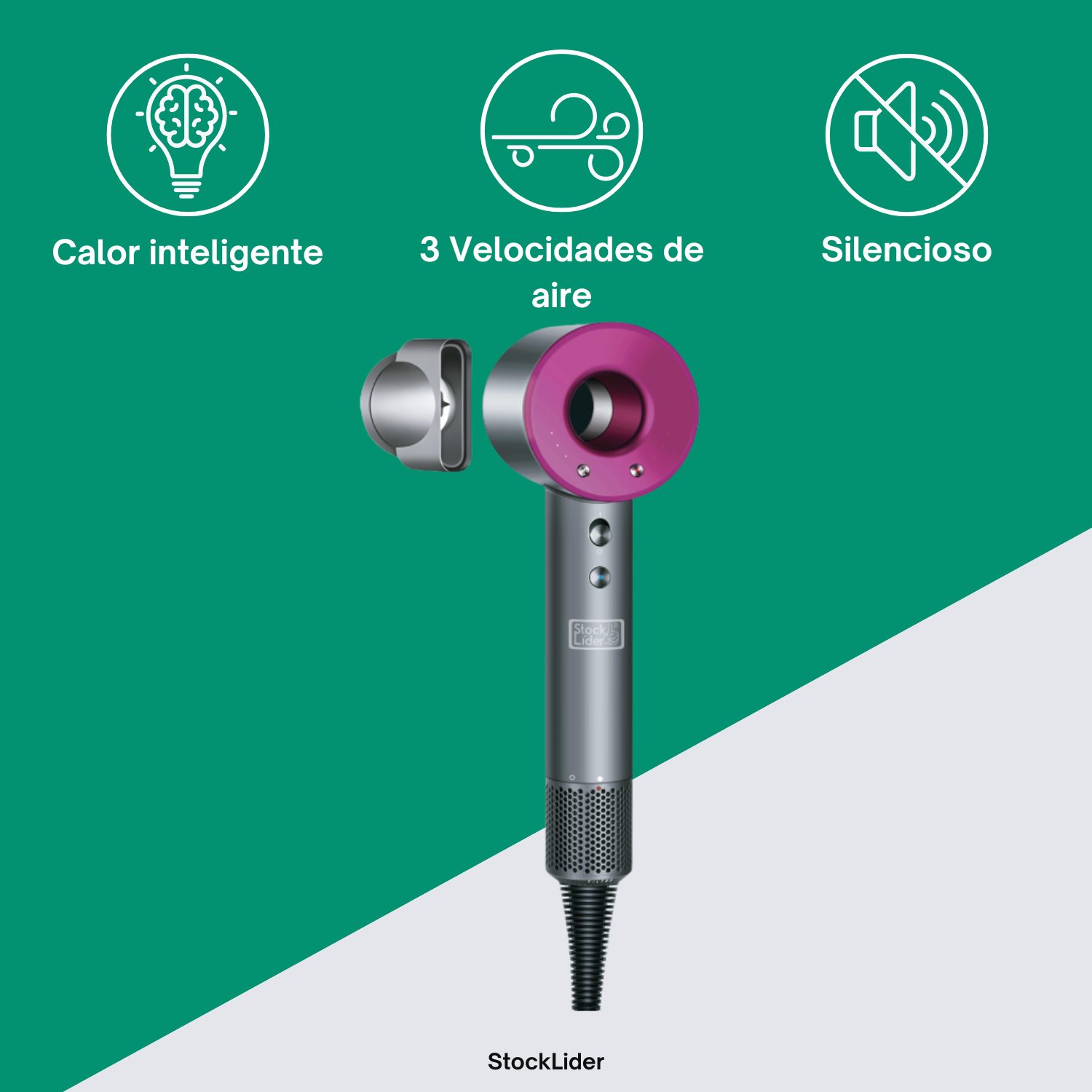 Cuenta con un potente motor de 110.000 rpm para un secado rápido. Mantén tu brillo natural y evita daños por calor. Perfecto para cada tipo de cabello con una variedad de ajustes y accesorios magnéticos.