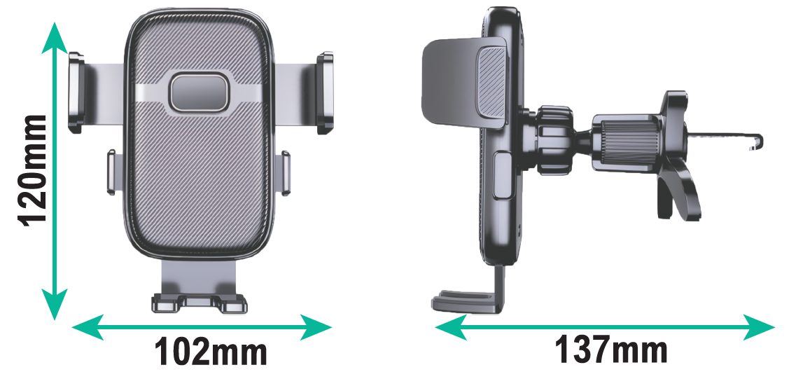 Sus brazos laterales cuentan con goma antideslizante, que protege el móvil de arañazos y mejora la sujeción. La base inferior ajustable permite acomodar smartphones de distintos tamaños y facilita la conexión del cable de carga sin interferencias. Un diseño eficiente que combina comodidad, robustez y estilo.