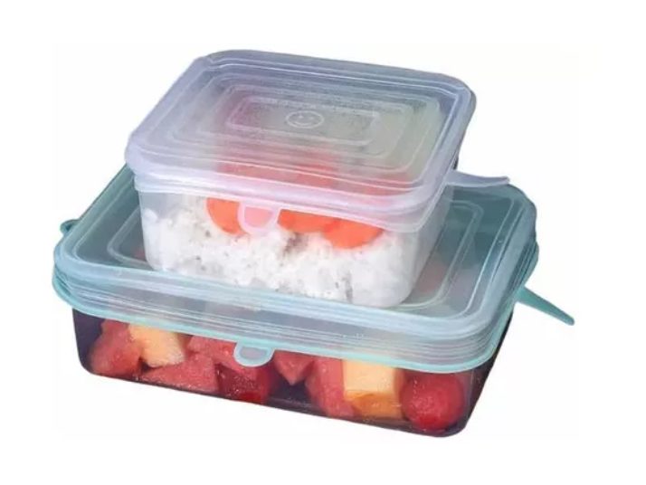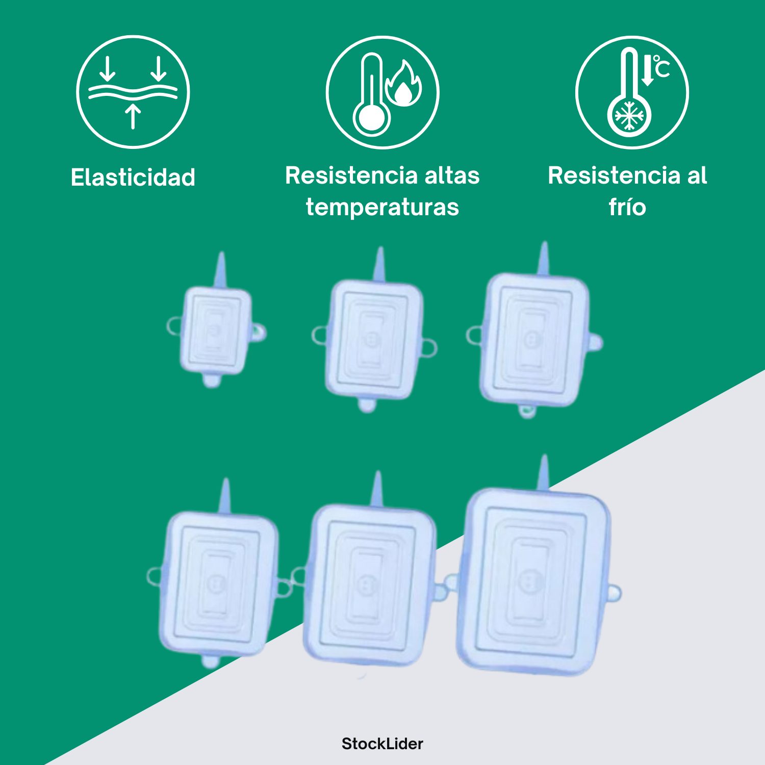 Juego de 6 fundas de silicona para cocina. La tapa elástica es compatible con muchos tamaños y formas de recipientes.