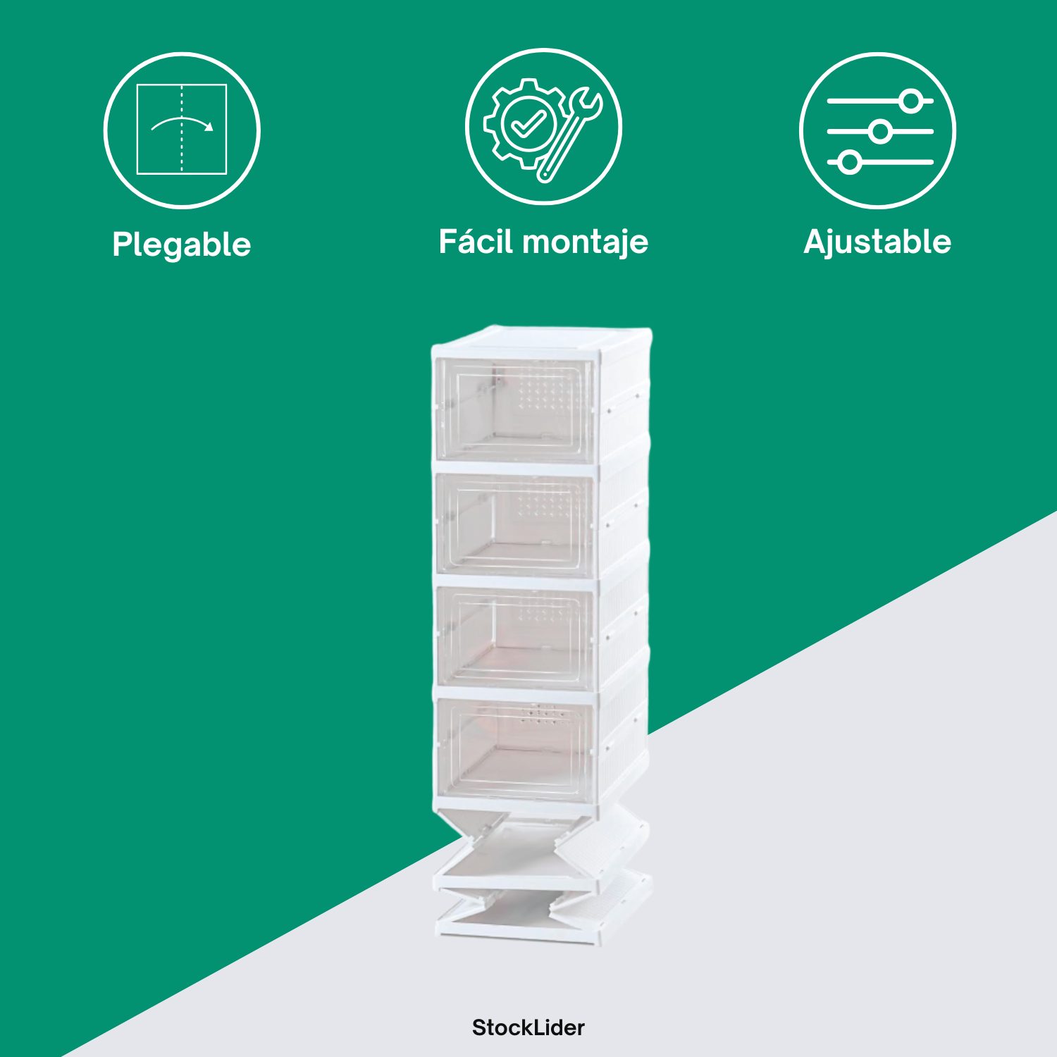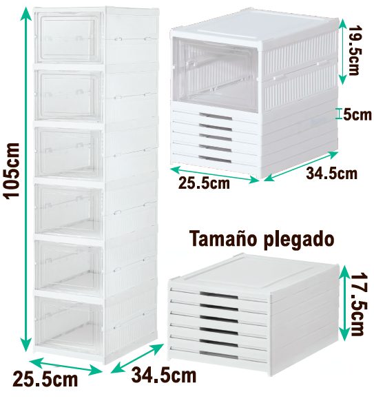 Su estructura totalmente plegable permite guardarlo fácilmente cuando no lo necesites, ocupando el mínimo espacio. Además, su montaje es rápido y sencillo: solo expande el producto, despliega la estructura, asegura la parte trasera y ajusta las puertas. ¡En pocos minutos tendrás un organizador práctico y elegante listo para usar!